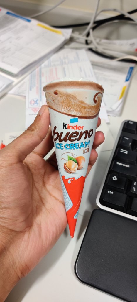 During the afternoon, after succumbing to the sugar and caffeine crash, I produce a Kinder Bueno chocolate bar from my bag. My colleague sees this and is instantly reminded that the newsagents in the hospital sells Kinder Bueno ice creams that he has always wanted to try. “Don’t eat that, give me a minute!”, he exclaims.Five minutes later he appears with five ice creams. What a great guy.