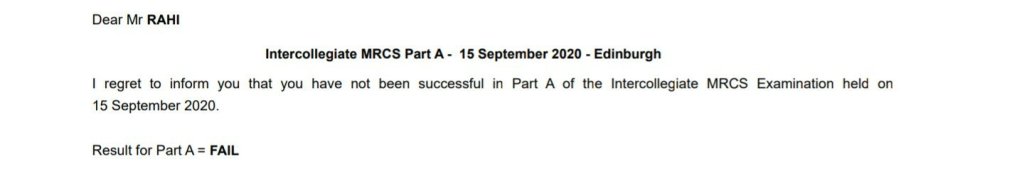 Two weeks ago, at around 6 pm, I awoke from a nap just before starting a week of night shifts. I checked my phone to find the usual onslaught of WhatsApp messages on the work chat about the extensive list of jobs awaiting me on the ward—lucky me, I thought. I quickly browsed my email inbox for anything of note and was greeted by an email from the Royal College of Surgeons of Edinburgh entitled “Results Letter”. The results for my recent Membership of Royal College of Surgeons (MRCS) exams had arrived. Excitedly I opened up the letter: 73%—not bad, I thought. As I continued to read the rest of the letter my excitement turned to despair.